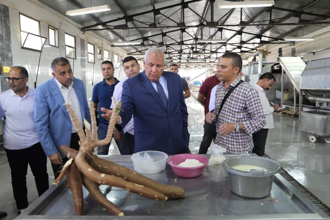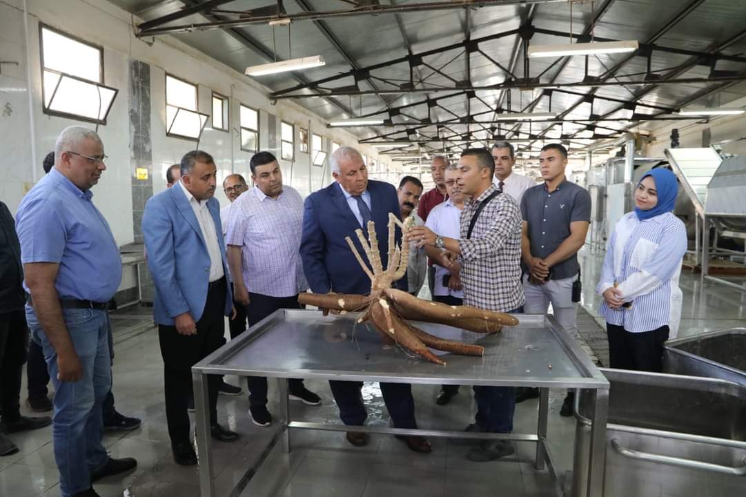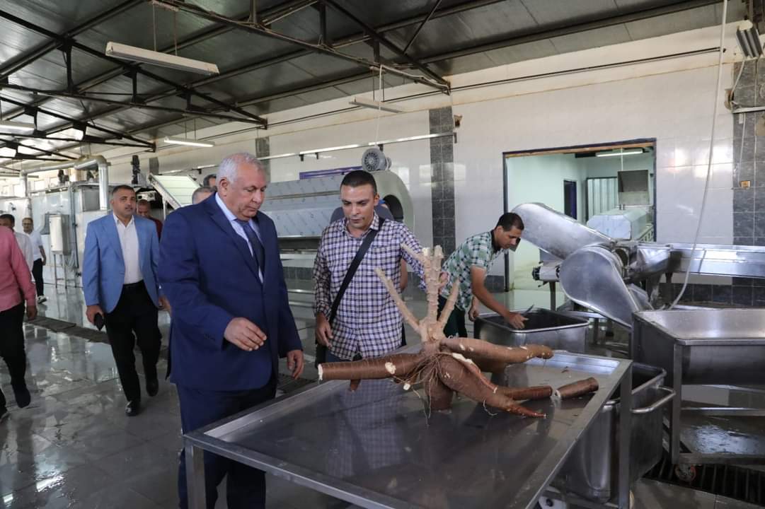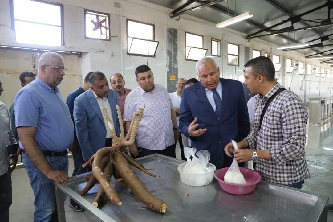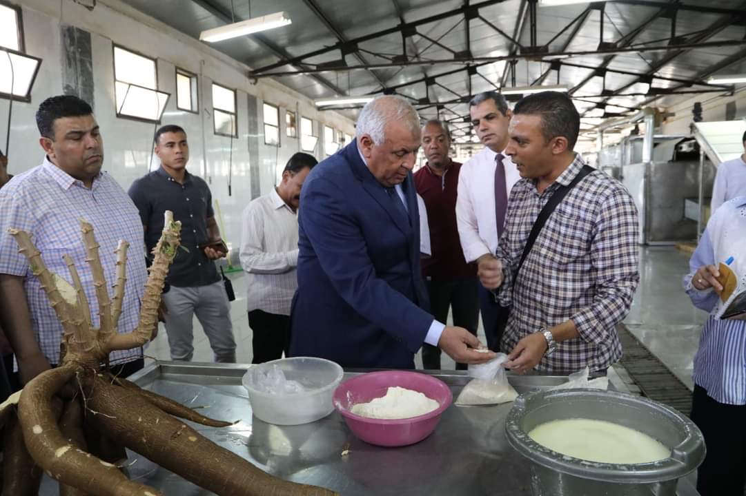 واطلع الزملوط على مراحل الإنتاج المختلفة لتصنيع الدقيق والنشا من النبات، والذي يتم استخدامه في إنتاج خبز صحي لمرضى حساسية الجلوتين وبعض الحالات المرضية والأنظمة الغذائية الأخرى، موجهًا بتوفير شتلات من النبات للتوسع في زراعته، وتوفير معدات لزيادة معدل الإنتاجية بخط التصنيع.