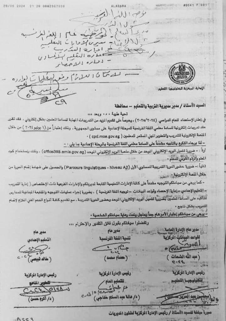 ووجهت وزارة التعليم على كافة الإدارات التعليمية التابعة لمديرينكم والإدارات الفرعية ذات الاختصاص ( إدارة التدريب _ التعليم الإعدادي - إدارة الإحصاء وقواعد البيانات - توجيه اللغة الفرنسية)، بضرورة إجراء عمليات التوجيه والمتابعة الميدانية للمدارس للتأكيد على الساحة المعلمين بضرورة تفعيل البريد الإلكتروني الموحد وحضور الدورة التدريبة، مع تقديم كافة أنواع الدعم الفني اللازم لإتمام التدريب بشكل ناجح.