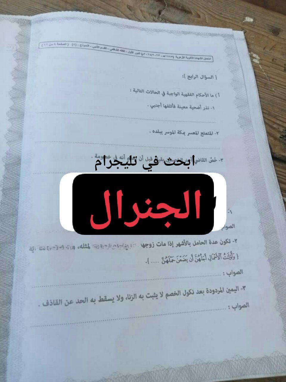 شاومينج يزعم نشر أجزاء لامتحان الفقه لطلاب الشعبة الأدبية بالشهادة الأزهرية| صور