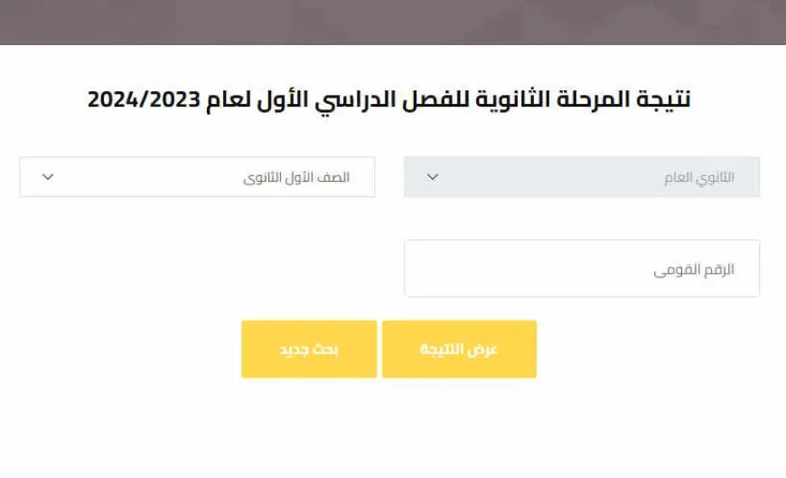 يمكن لطلاب الصف الأول الثانوي الحصول على نتيجة الترم الثاني للعام الدراسي 2023-2024 من خلال الضغط هنا.