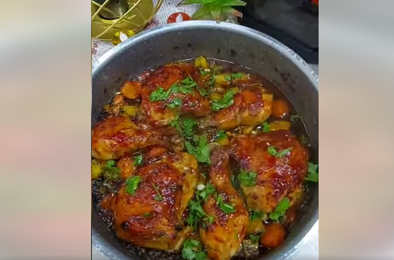 - اتركي الفراخ مع الخضار على نار هادئة لحين تحضير الصوص بخلط الكاتشب مع الهريسة والتتبيل بالملح والعسل.