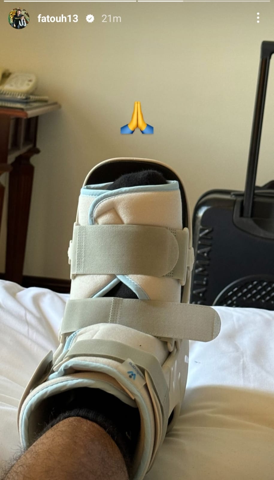 وفي وقت سابق، نشر أحمد فتوح لاعب منتخب مصر ونادي الزمالك، صورة له على مواقع التواصل الاجتماعي إنستجرام، واضعا قدمه في جبيرة طبية بعد إصابته في معسكر الفراعنة استعدادا لمواجهتي بوركينا فاسو وغينا بيساو في تصفيات كأس العالم.