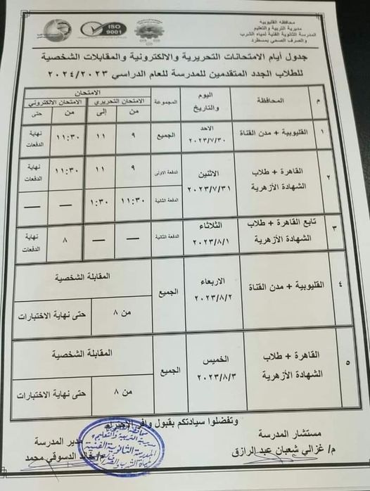 - تقديم شهادة النجاح أو بيان نجاح للطالب في الشهادة الإعدادية.
