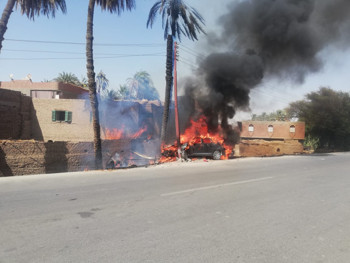 وانتقلت على الفور لموقع البلاغ؛ قوات الأمن والشرطة وضباط المباحث وسيارة الإسعاف والإطفاء، وبالفحص والمعاينة تبين اشتعال النيران بسيارة خاصة ببنك مصر تحمل لوحات معدنية رقم1837 ي د س، بقيادة محمد. م. ت، وتمكنت الحماية المدنية والإطفاء من السيطرة على الحريق دون وقوع خسائر بشرية أو خسائر في الأرواح.