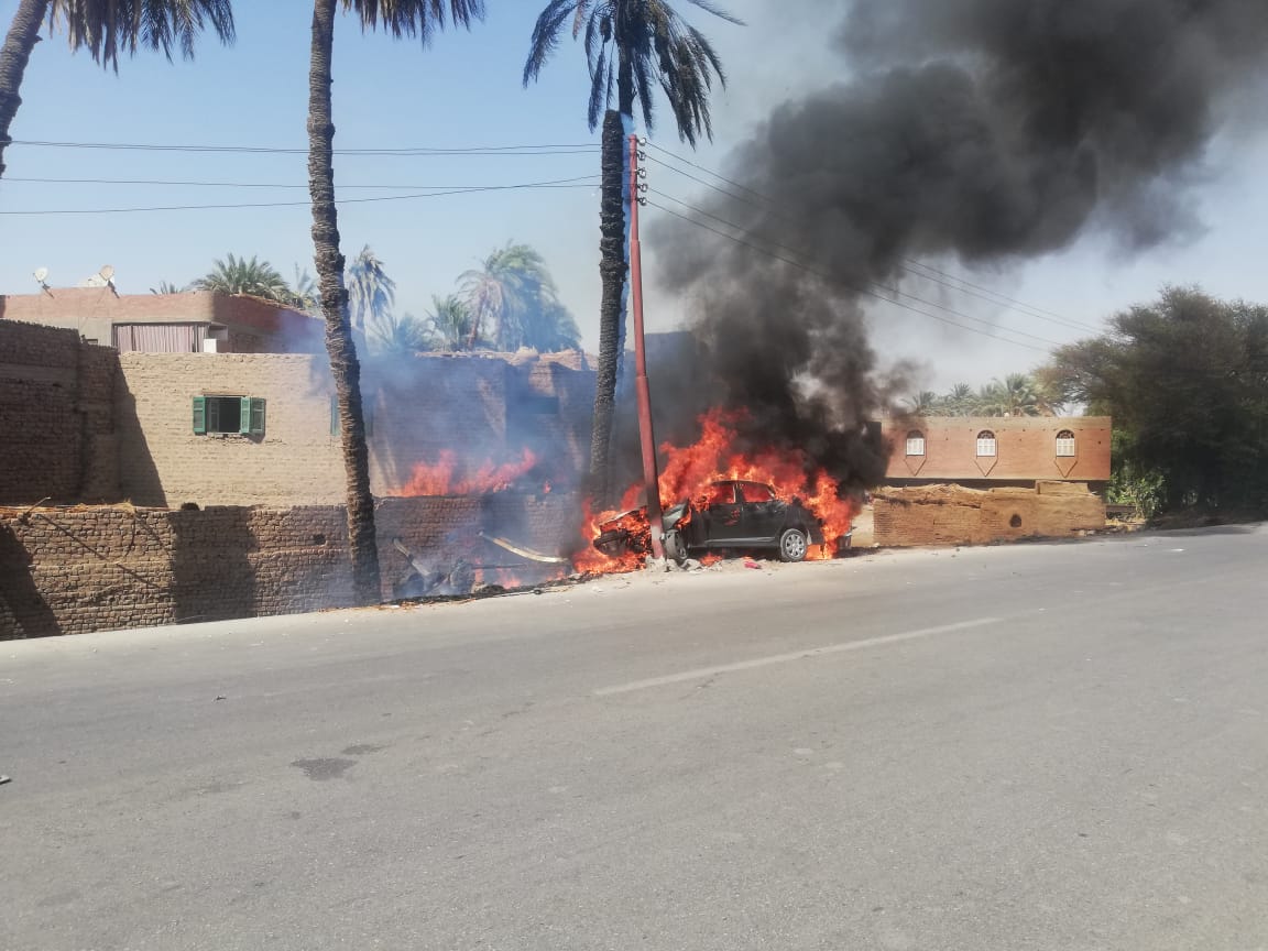 وتلقى اللواء وائل نصار مدير أمن أسيوط إخطارا من مأمور مركز شرطة أسيوط، يفيد بورود بلاغ من الأهالي بنشوب حريق بسيارة إثر اصطدامها بنخلة على طريق قرية الشغبة التابعة إلى مركز أسيوط.