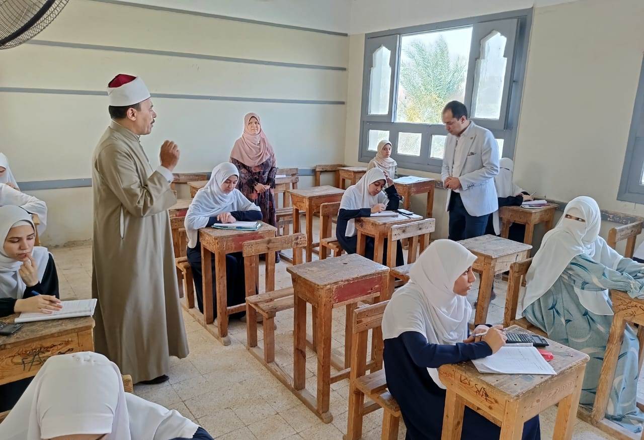 طلاب القسم العلمي بالثانوية الأزهرية يؤدون امتحان الجبر والهندسة الفراغية في هدوء واستقرار