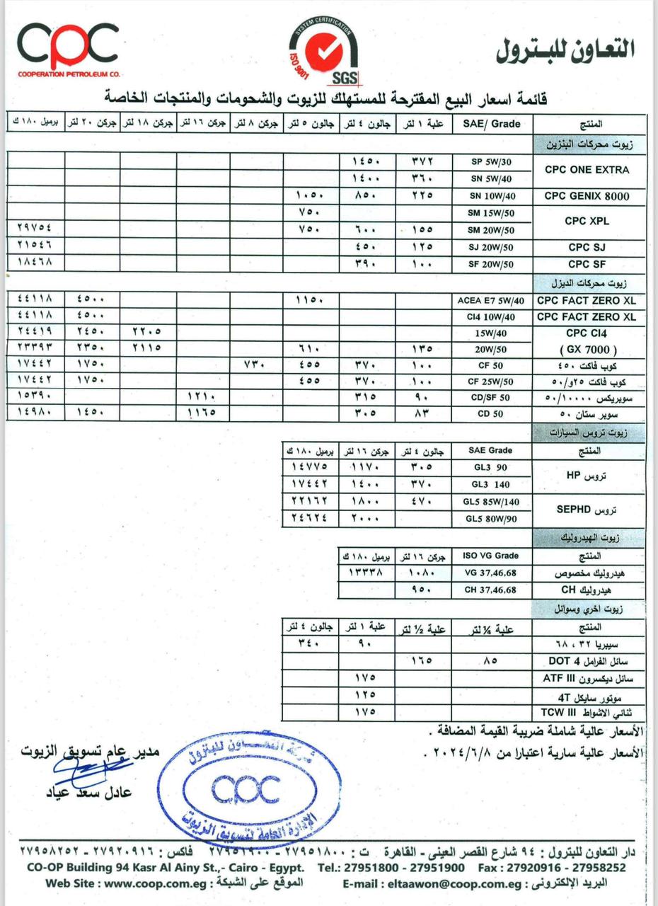 التعاون للبترول تعلن زيادة أسعار الزيوت