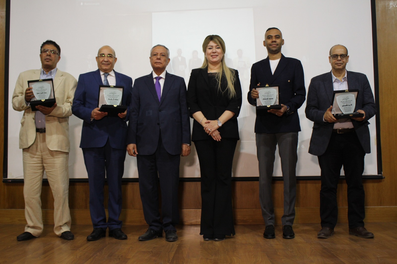 وفي الختام، كرم رئيس الجامعة، أعضاء لجان التحكيم حيث قام سلمهم دروعًا تذكارية باسم الجامعة العربية المفتوحة، تقديرًا لمشاركتهم وجهدهم المبذول في تحكيم مشروعات التخرج، موجها الشكر كذلك للدكتورة نرمين خضر عميدة الكلية على ما تبذله من جهود في سبيل الارتقاء بالعملية التدريسية والتدريبية بالكلية.