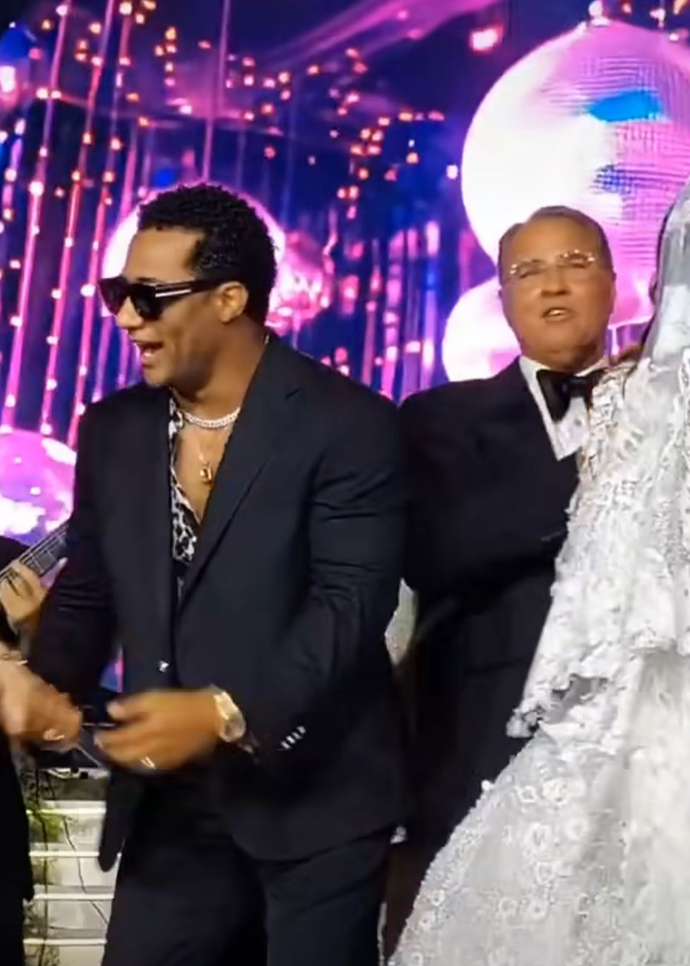 لأول مرة معا.. عمرو دياب ومحمد رمضان في حفل زفاف ابنة محمد السعدي