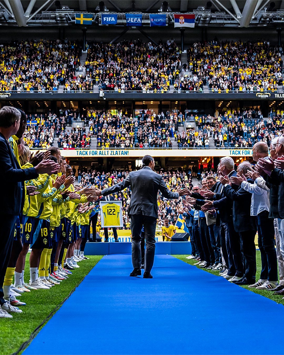 واعتزل إبراهيموفيتش لعبة كرة القدم في العام الماضي بينما تم تكريمه من قبل منتخبه السويد بالأمس، حيث أطلق اللاعب العديد من الكلمات في هذا التكريم، تعبيرًا على حبه وشغفه لكرة القدم التي ودعها من العام الماضي.