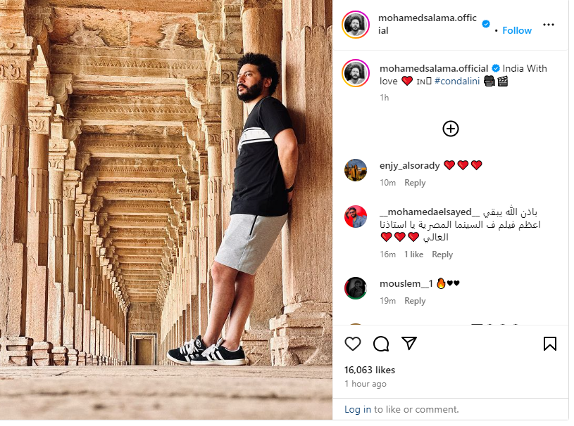 ونشر محمد سلامة، الصورة عبر حسابه الشخصي بموقع تبادل الصور والفيديوهات إنستجرام، وقال: الهند مع الحب في فيلم كونداليني.