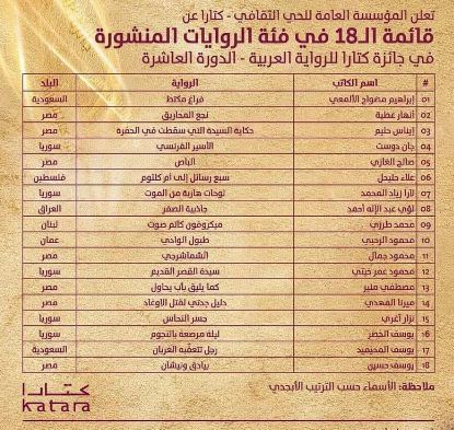 القائمة الطويلة لجائزة كتارا للرواية المنشورة| أسماء
