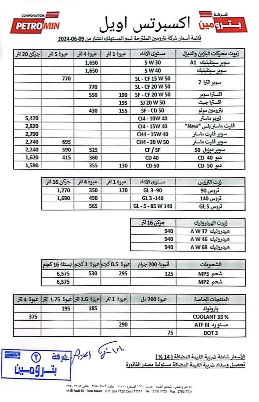 بنسبة 8%.. زيادة جديدة في أسعار زيوت سيارات بترومين