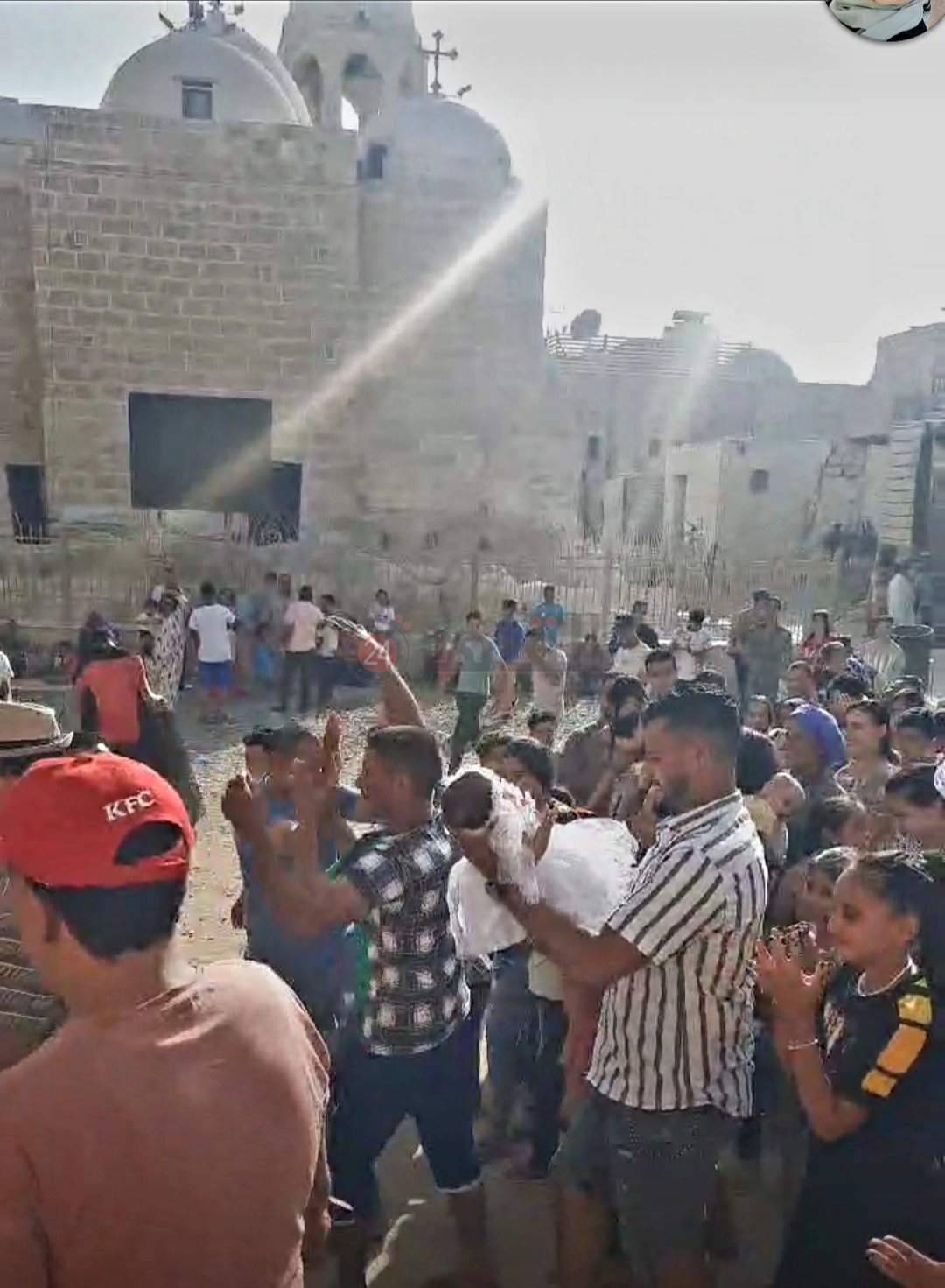 فرحة العُمْدَة تُعانق أصوات الطبل والمزمار.. تقليد تعميد الأطفال في مولد السيدة العذراء بجبل الطير في المنيا| صور وفيديو