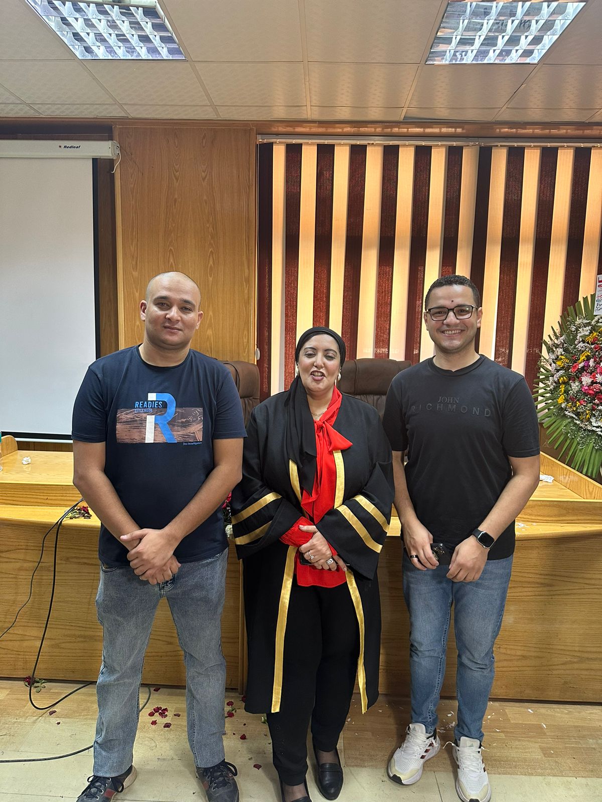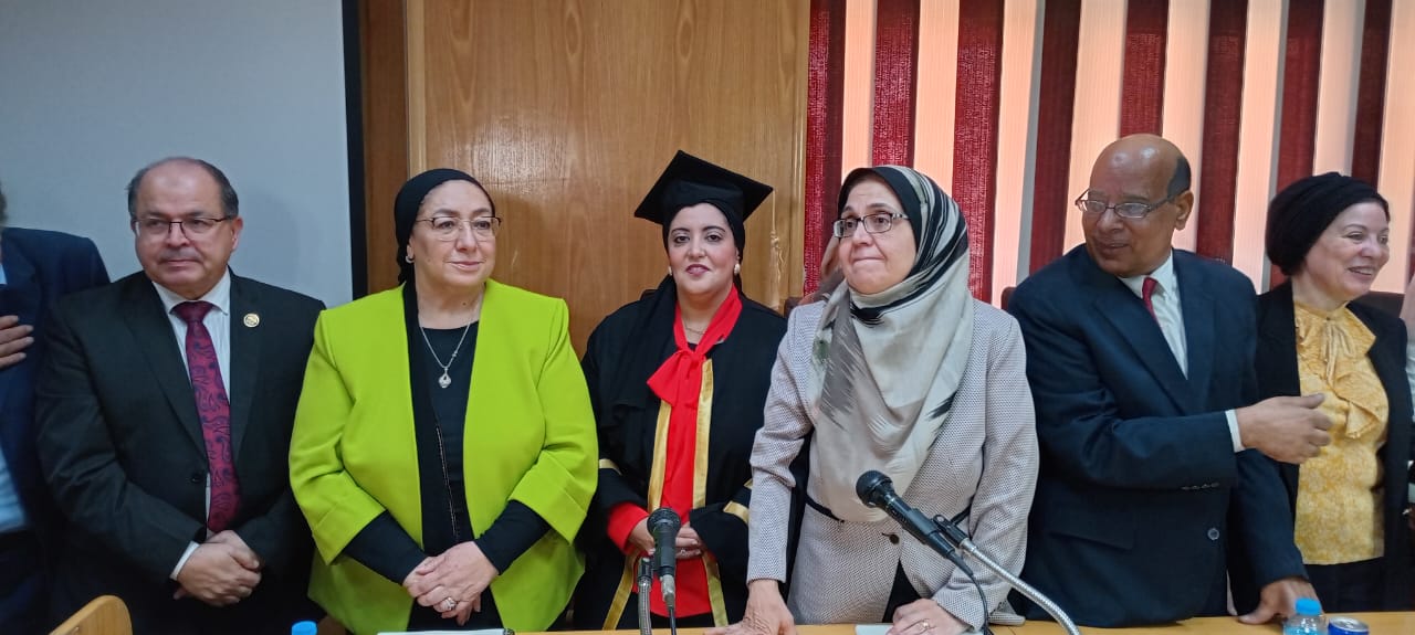 وتكونت لجنة المناقشة من الدكتورة مها سيد زين العابدين وزير الصحة الأسبق، والدكتور محمود السيد أبو سالم، وأشرف على رسالة الدكتوراه: أميمة ألو الفتوح محمد الأستاذ بقسم الصحة العامة وطب المجتمع جامعة المنوفية، الدكتورة هويدا أنور الشاذلي الأستاذ بقسم الصحة العامة وطب المجتمع جامعة المنوفية.