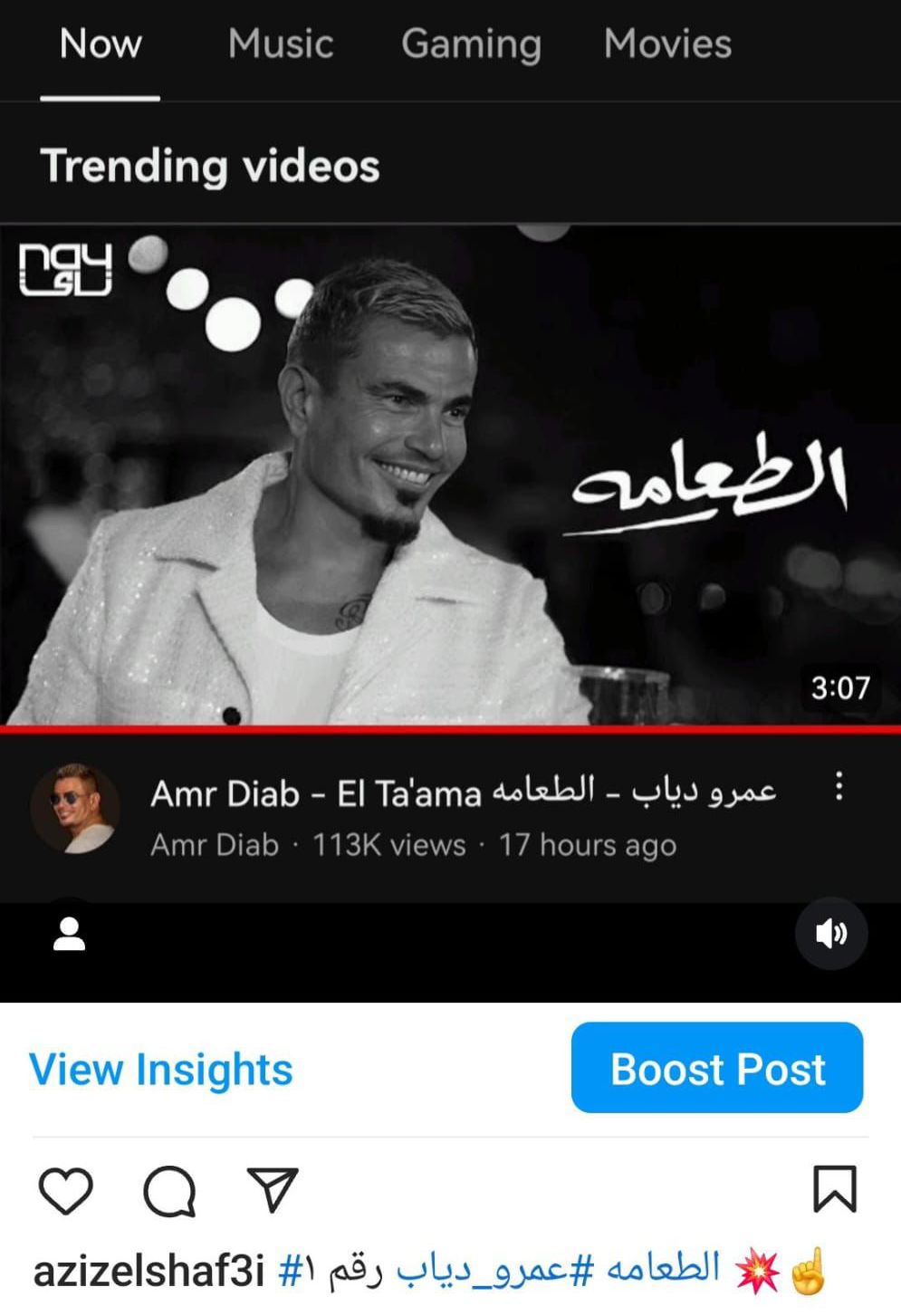 تصدر المطرب عمرو دياب، تريند موقع الفيديوهات الشهير يوتيوب، فور طرح أغنيته الجديدة الطعامة والتي صدرت عبر قناته الرسمية على يوتيوب.