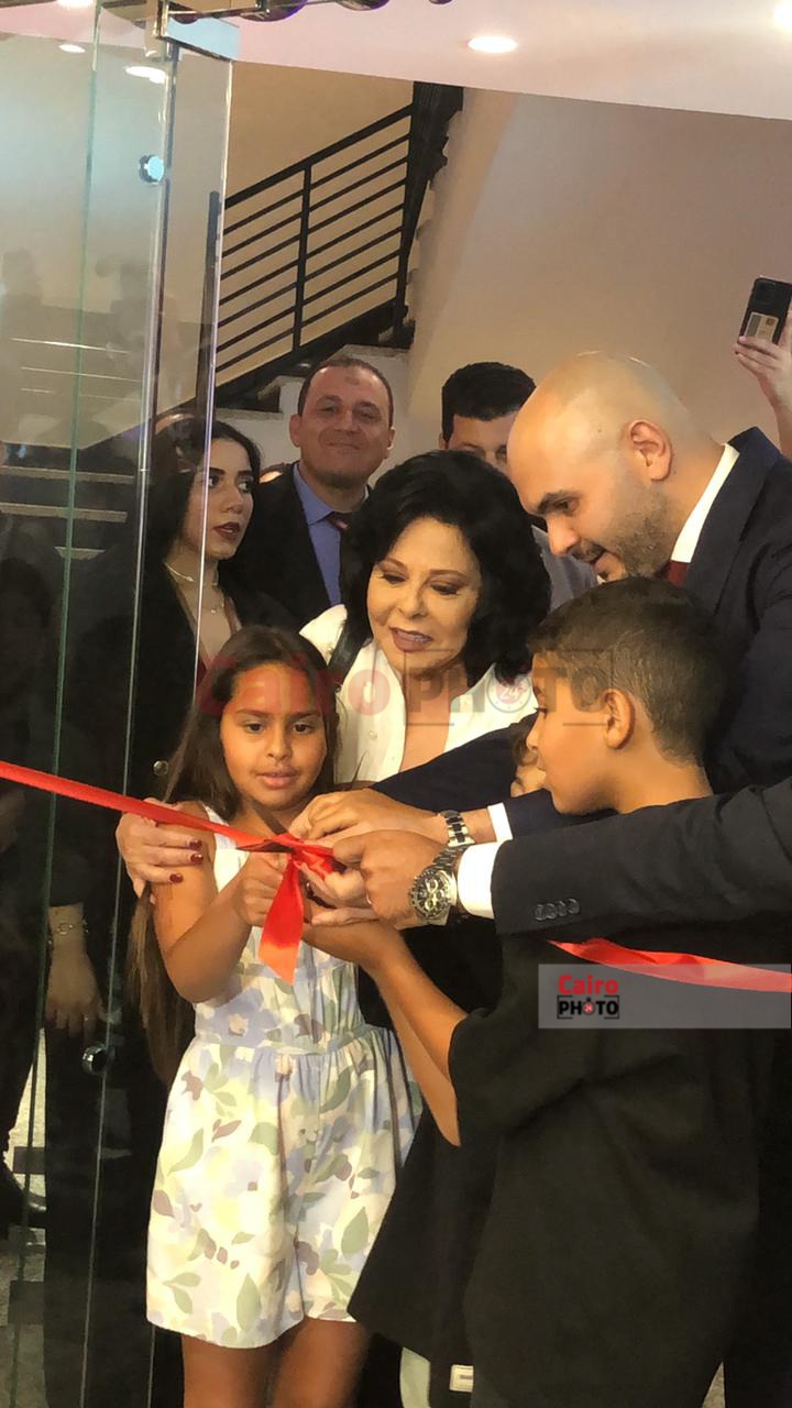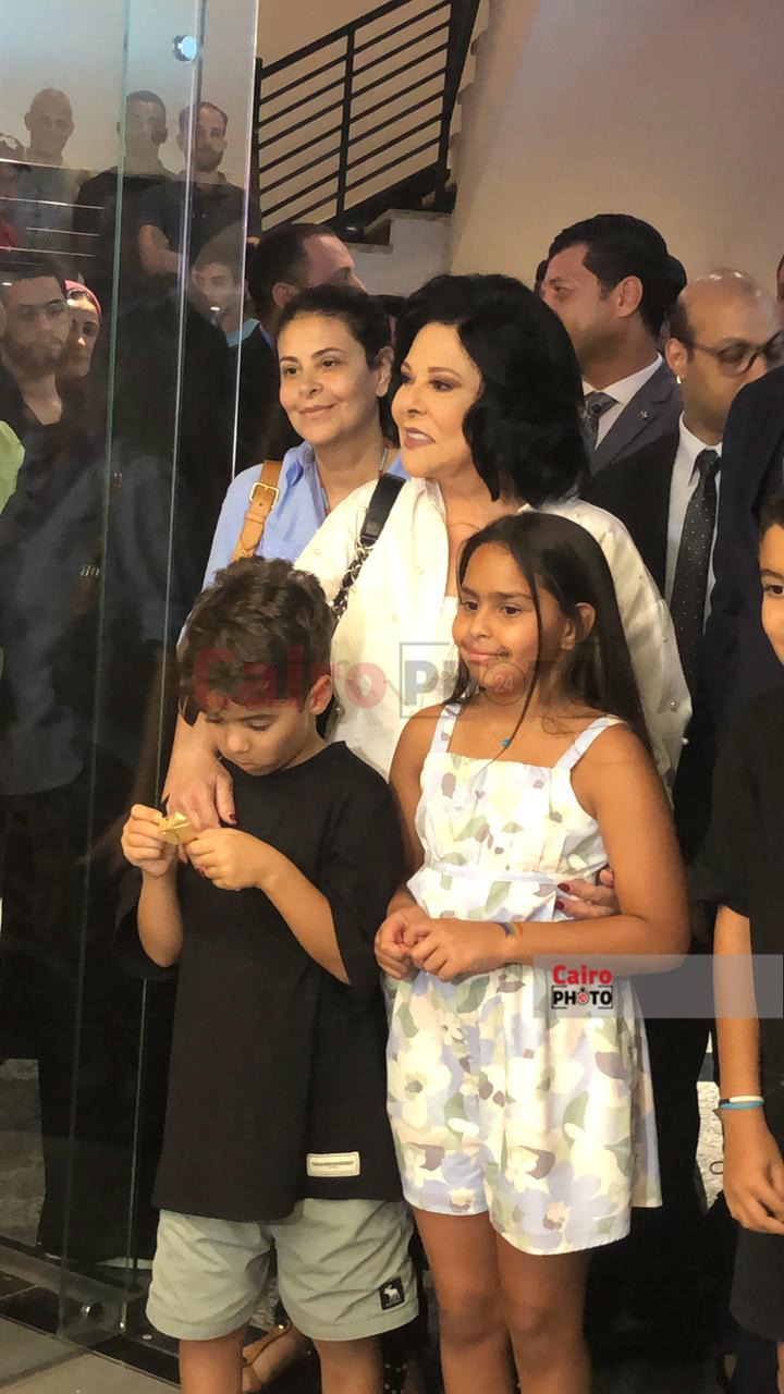 وظهرت إسعاد يونس، رفقة حفيدتها وسط التزاحم خلال افتتاحها مجمع سينمات رنيسانس في بنها.