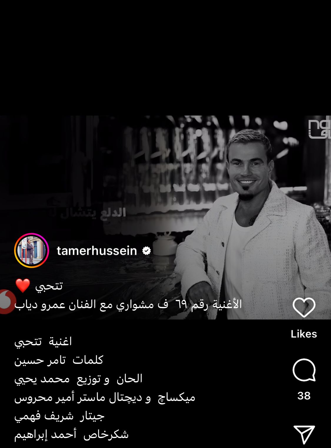 ونشر الشاعر تامر حسين عبر صفحته الخاصة بموقع تبادل الصور والفيديوهات انستجرام مقطع من الأغنية وعلق عليه قائلًا: الأغنية رقم 69، في مشواري مع الفنان عمرو دياب، وهي من كلماتي، والحان وتوزيع محمد يحي، ميكساج وديجيتال ماستر أمير محروس، جيتار شريف فهمي.