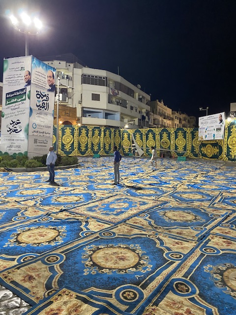 وأضاف رئيس المدينة: جهزنا 2 مصلى للنساء شرق وغرب الساحة بمحورين مختلفين، فضلا عن فرش الساحة والميدان بالسجاد الملون المعقم.
