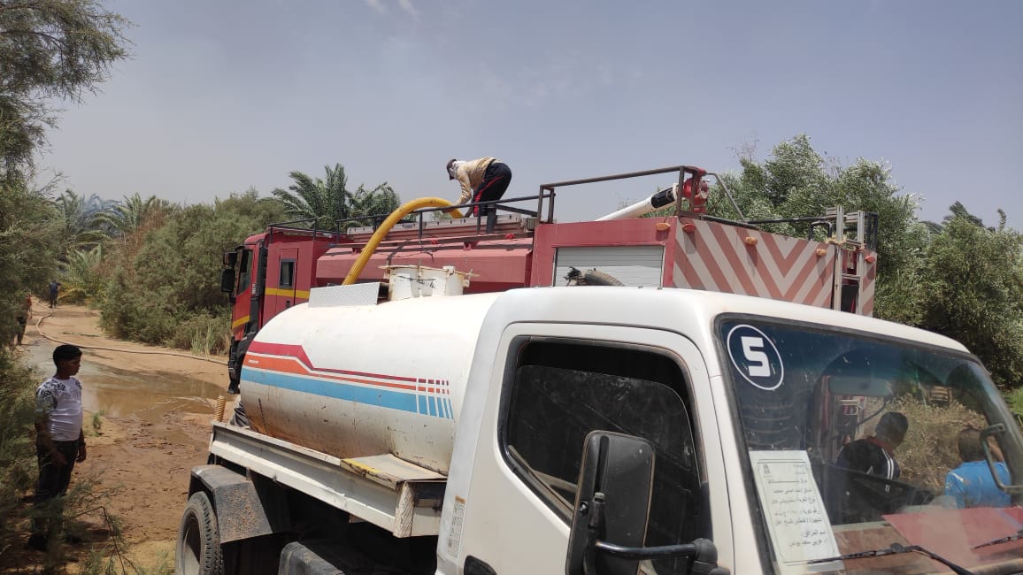 في أول أيام العيد... نشوب حريقين في مزارع نخيل وحظائر ماشية بالوادي الجديد| صور