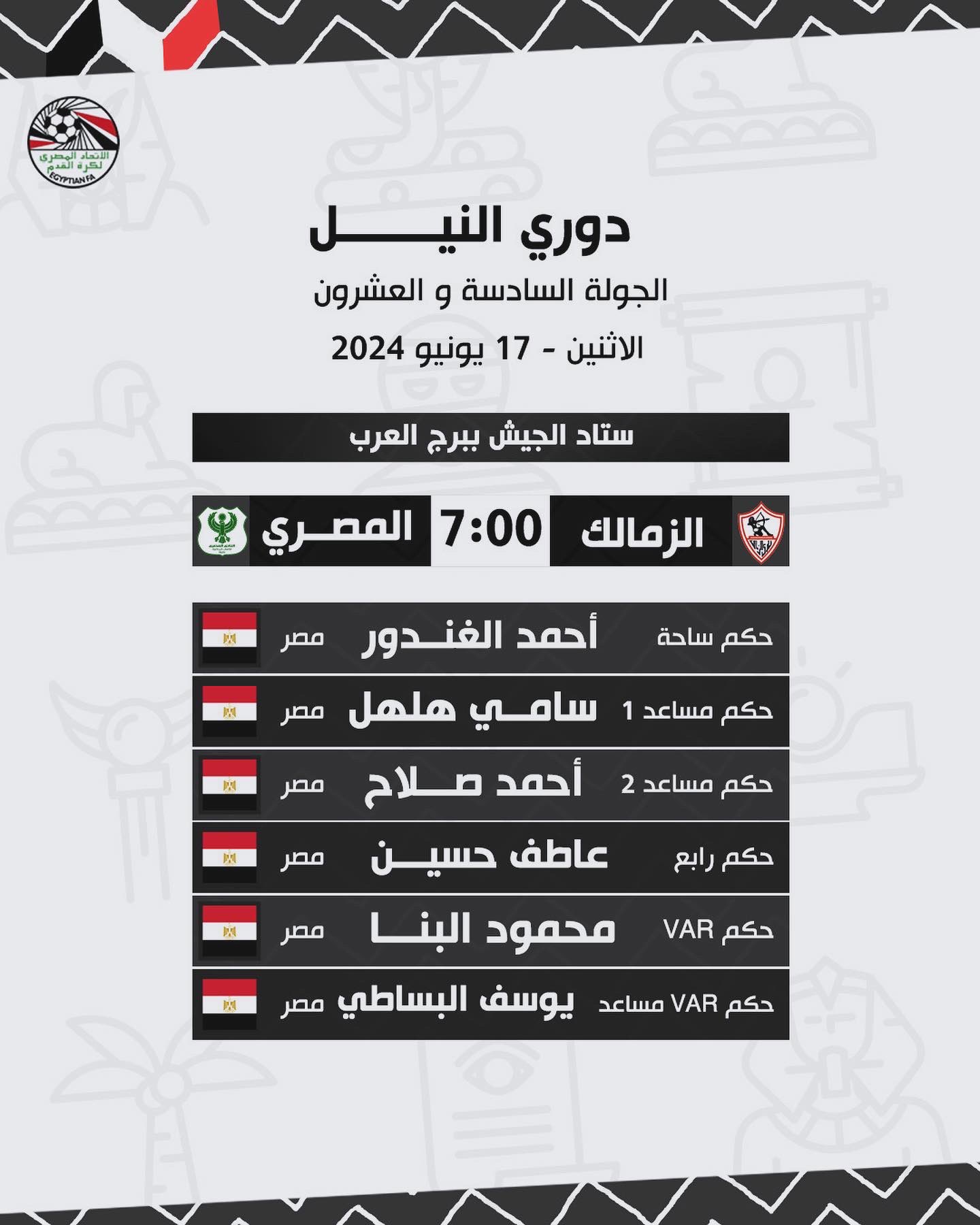 طاقم حكام مباراة الزمالك والمصري