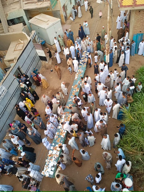 احتفال بالعيد بموائد إفطار بطول القرية