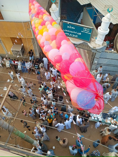 وأوضح، أن الأطباق على الموائد شملت جميع أنواع الحلويات والشوكولاتة والبسكويت والنواعم، وبالطبع التمر كان حاضرا للإفطار، الناس كلها كانت متجمعة عند مسجد البلد من شباب وأطفال ونساء وشيوخ عقب انتهاء الصلاة حيث سادت أجواء البهجة والفرحة بالعيد والاحتفال بإسقاط البالونات وأطباق الحلويات الممتدة كإفطار جماعي لكل أهالي القرية.