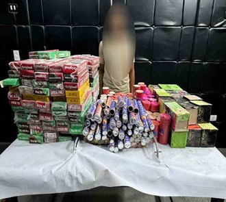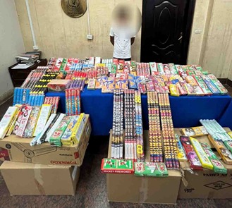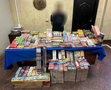 وضبط ربة منزل وعامل بدائرة قسم شرطة الشروق وعُثر بحوزتهما على كمية من ألعاب نارية مختلفة الأشكال والأنواع والأحجام.