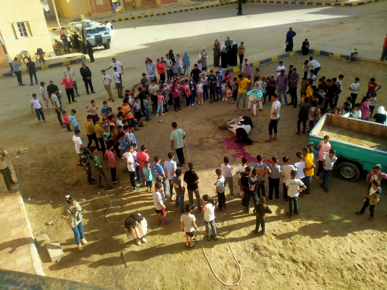 توزيع الهدايا والملابس والمواد الغذائية واللحوم على الفلسطينيين بالعريش