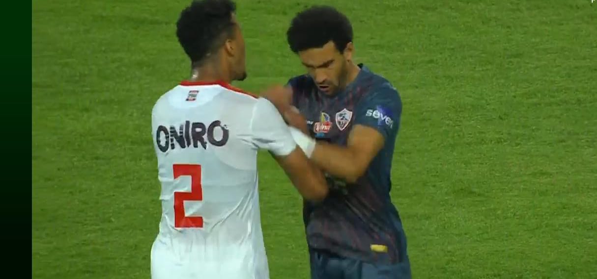 الأمر الذي دفع محمد عواد إلى التوجه ناحية حسام عبد المجيد مدافع الفريق ووصلت إلى حد التطاول بالأيدي بين اللاعبين مما أدى إلى تدخل لاعبي الزمالك وانهاء الأمر سريعًا.