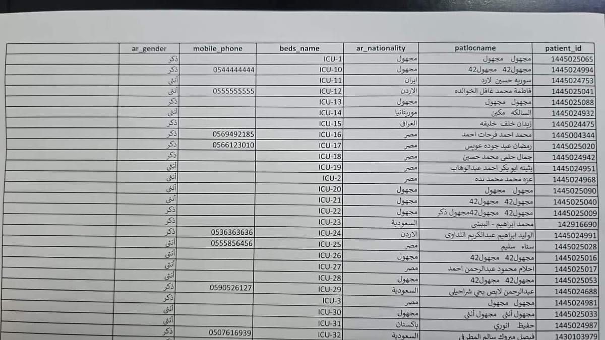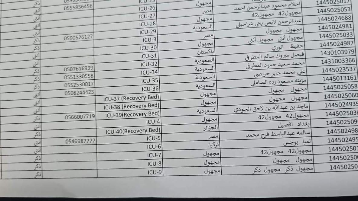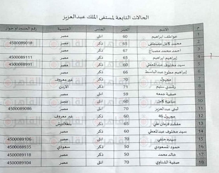 وجاءت قائمة أسماء المرضي من الحجاج المصريين بمستشفى الملك عبد العزيز كالتالي: