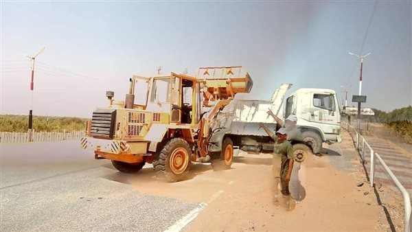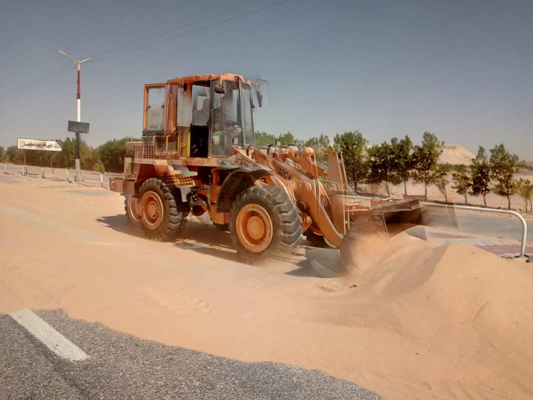 الوادي الجديد تدفع بمعدات لإزالة الرمال من طريق الخارجة - أسيوط| صور