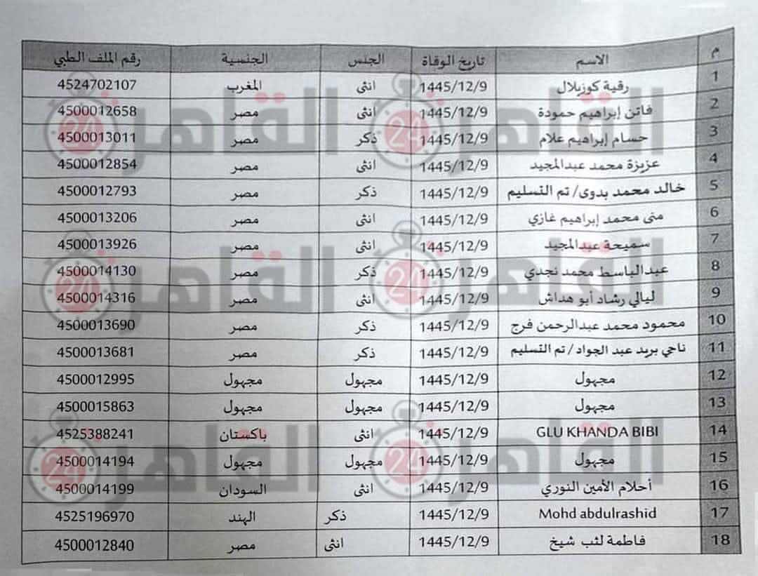 أسماء وفيات الحجاج المصريين 2024