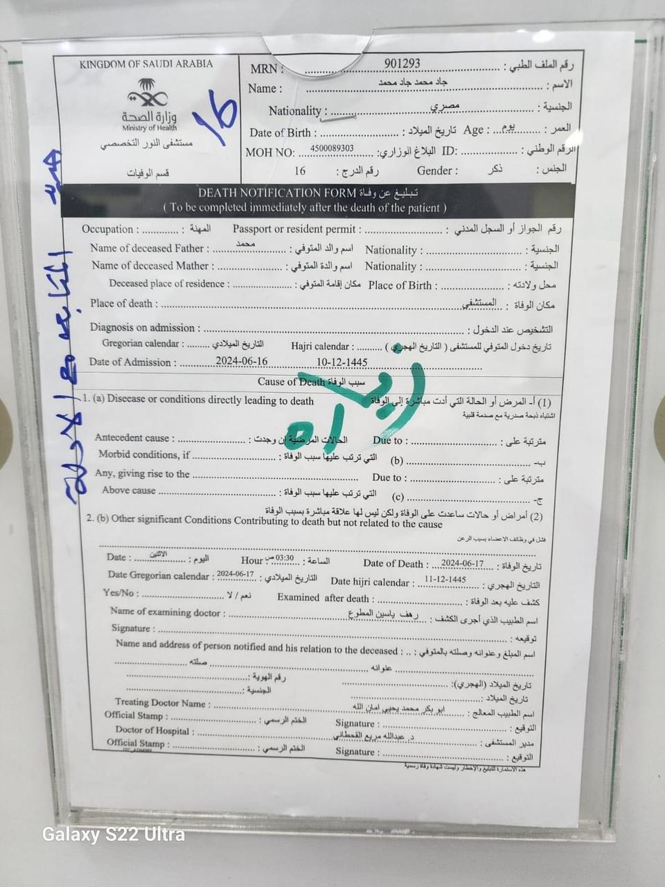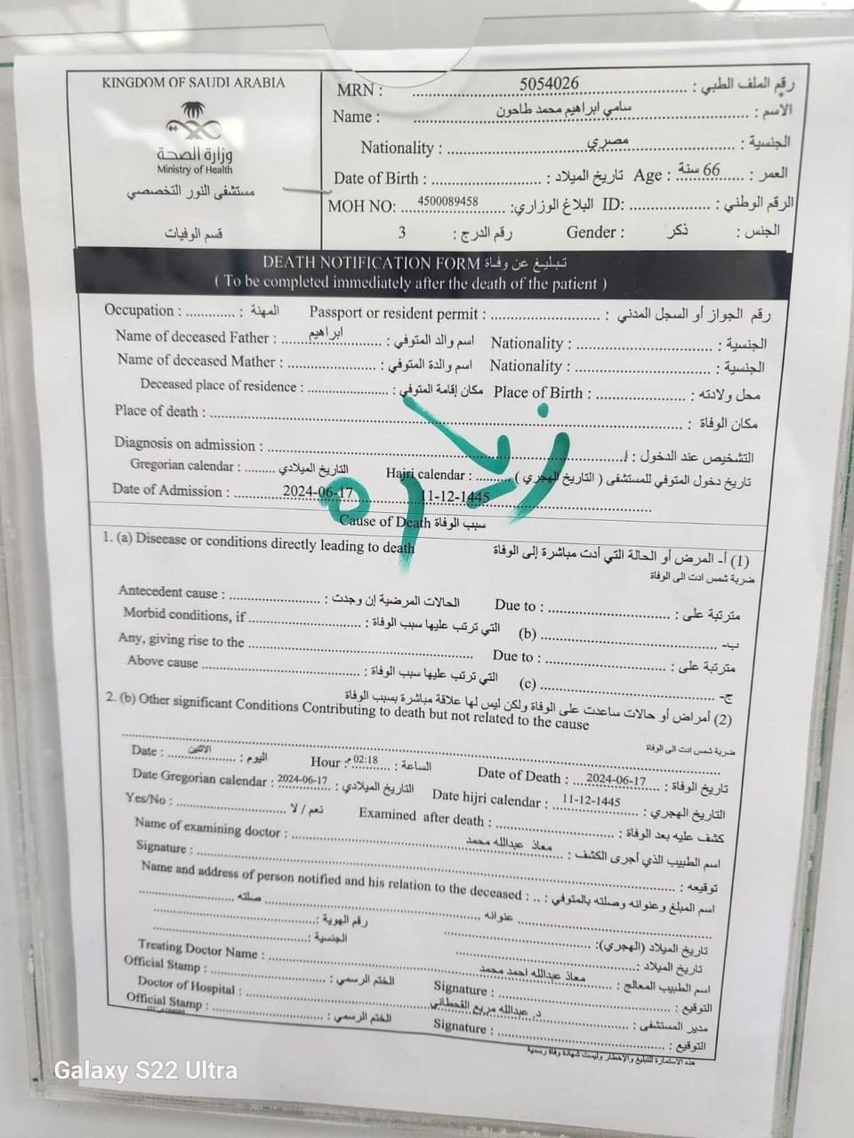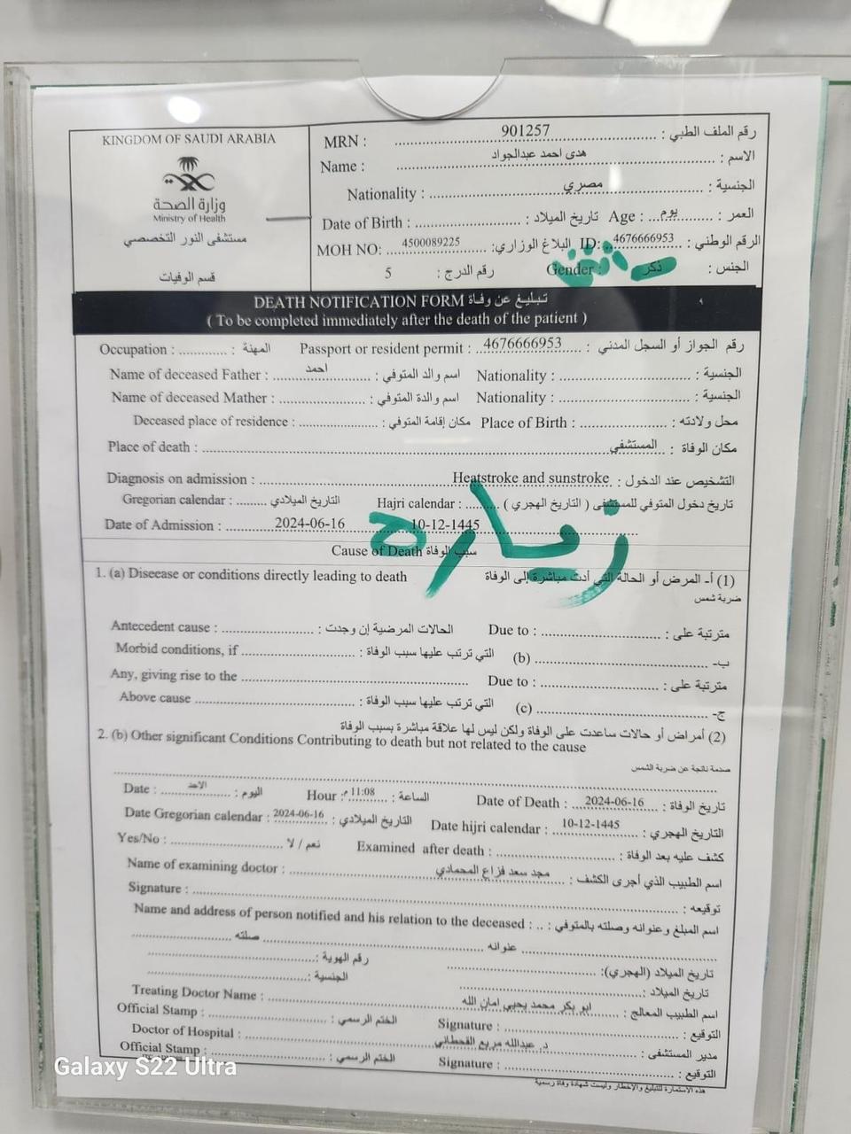 حصل القاهرة 24، على شهادت وفيات الحجاج المصريين خلال أداء مناسك الحج 2024، وأغلب الوفيات من حجاج الزيارة.