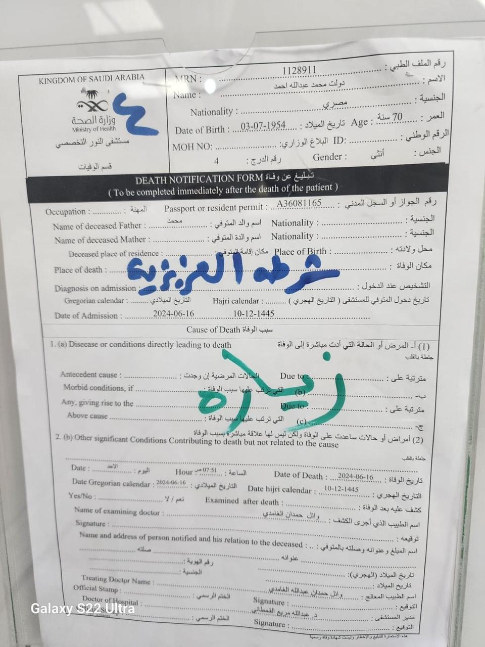 وفي وقت سابق، حصل القاهرة 24، على شهادات وفيات الحجاج المصريين خلال أداء مناسك الحج 2024، وأغلب الوفيات من حجاج الزيارة، وجاءت شهادات الوفيات كالتالي: