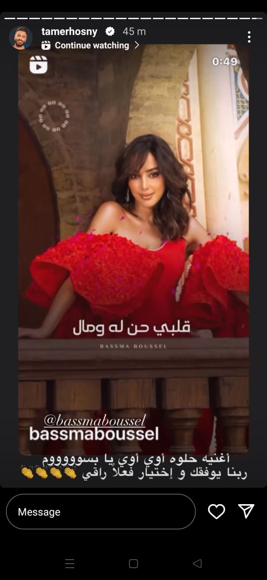 هنأ الفنان تامر حسني، طليقته بسمة بوسيل، بعد طرحها أجدد أغانيها بعنوان قال في حقي، وذلك بعد النجاح الكبير الذي حققته مؤخرًا بأغنية البدايات.