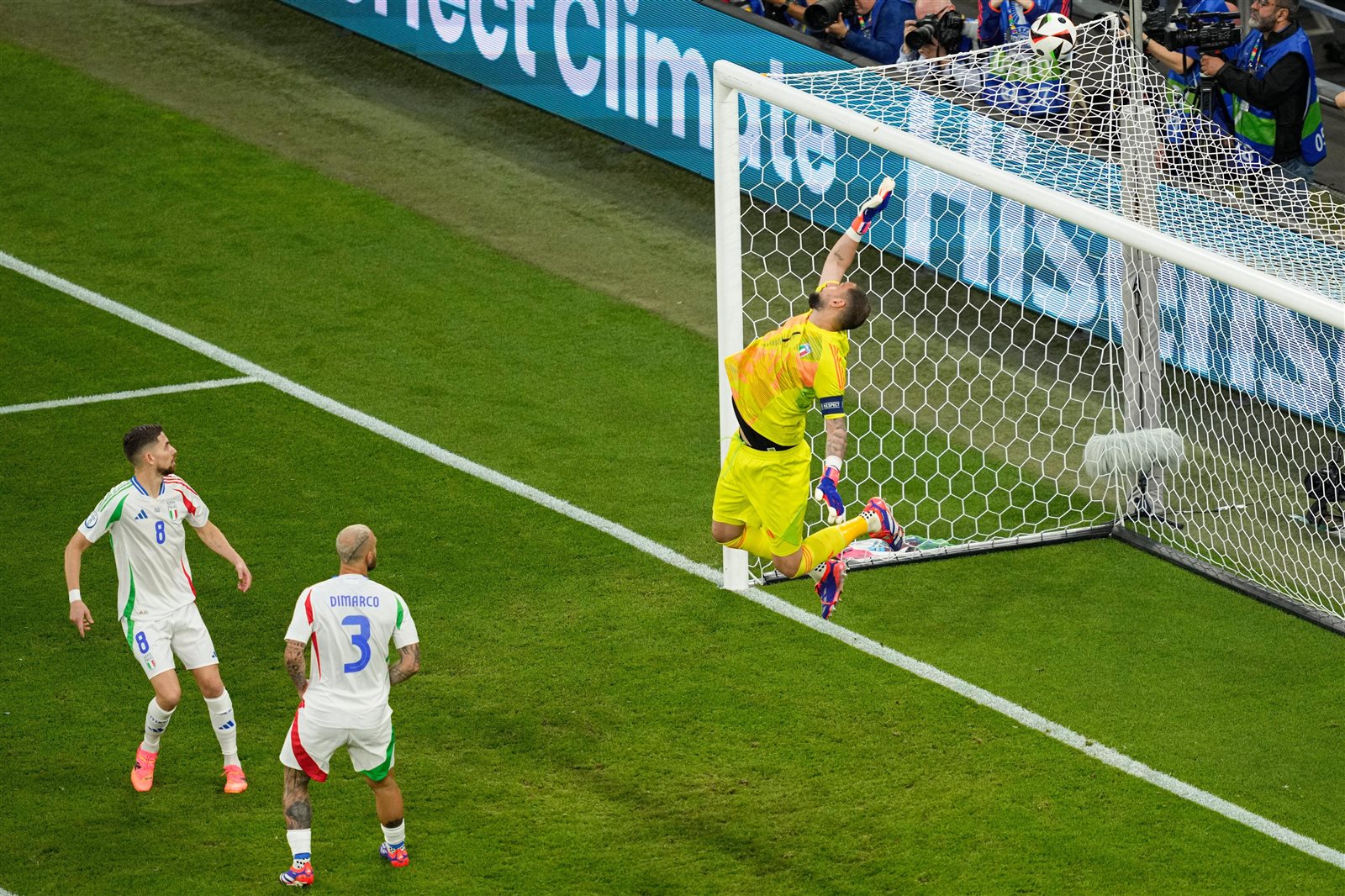 وفي الدقيقة 15 من عمر الشوط الأول، تلقى اللاعب دوناروما لاعب منتخب إيطاليا بطاقة صفراء في أحداث الشوط الأول.