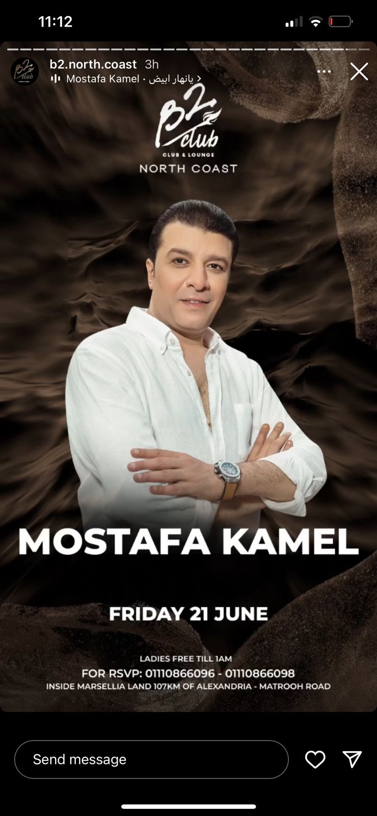 يواصل عدد كبير من المطربين في الفترة الحالية تقديم العديد من الحفلات، ويستعد مصطفى كامل للقاء جمهوره يوم 21 من الشهر الحالي في مرسيليا لاند الساحل الشمالي، وتشارك في نفس الحلفة الراقصة صافيناز، وقد أعلن القائمين على الحفل عن دخول السيدات مجانًا.