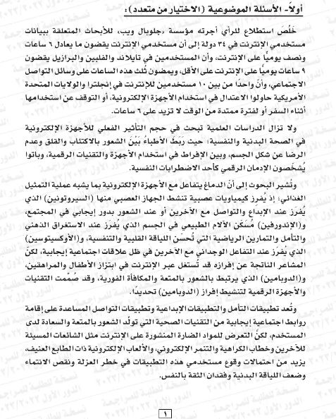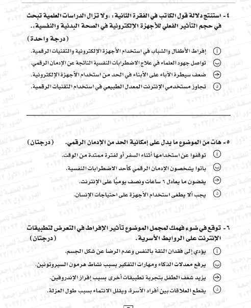 - عدد الأسئلة في مادة اللغة العربية التي تصل درجاتها إلى 6 درجات: سؤال واحد