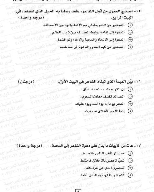 - جاء عدد الأسئلة بدرجتين في مادة اللغة العربية: 15 سؤالا