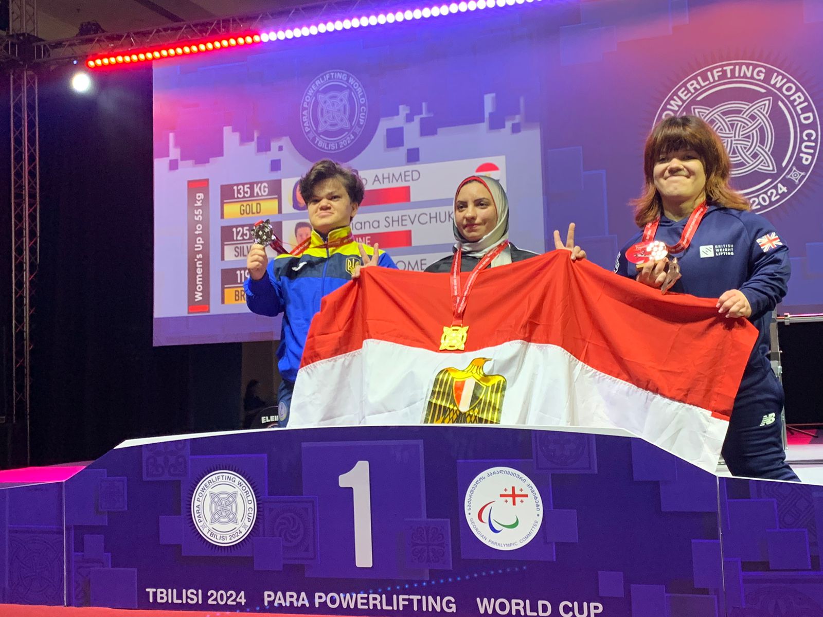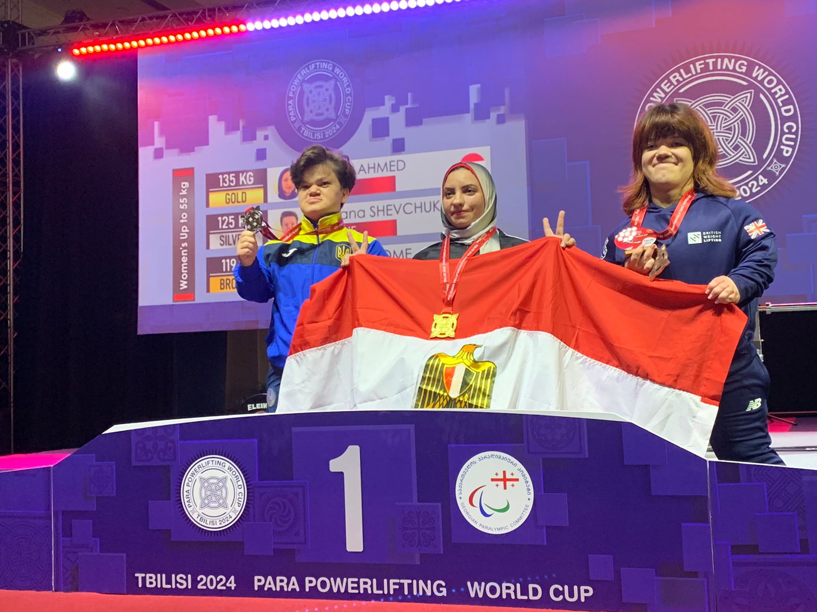 ونجحت رحاب رضوان لاعبة منتخب مصر لرفع الأثقال البارالمبي، في تحقيق الميدالية الذهبية ببطولة كأس العالم المقامة حاليا في دولة جورجيا، محققة رقما قياسيا عالميا في منافسات 55 كجم بعد رفع وزن 135 كجم في إنجاز تاريخي للبطلة البارالمبية المصرية، وبذلك تكسر الرقم القياسي العالمي لوزن 55 كجم.