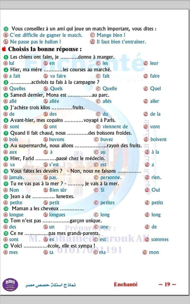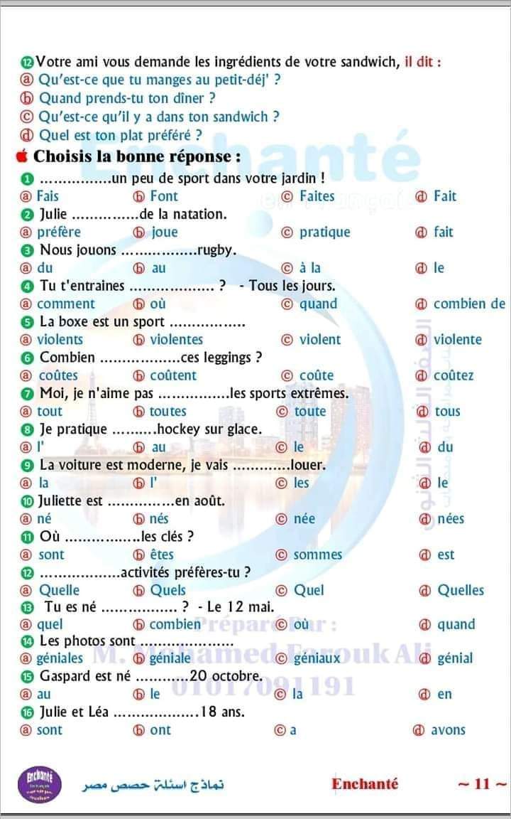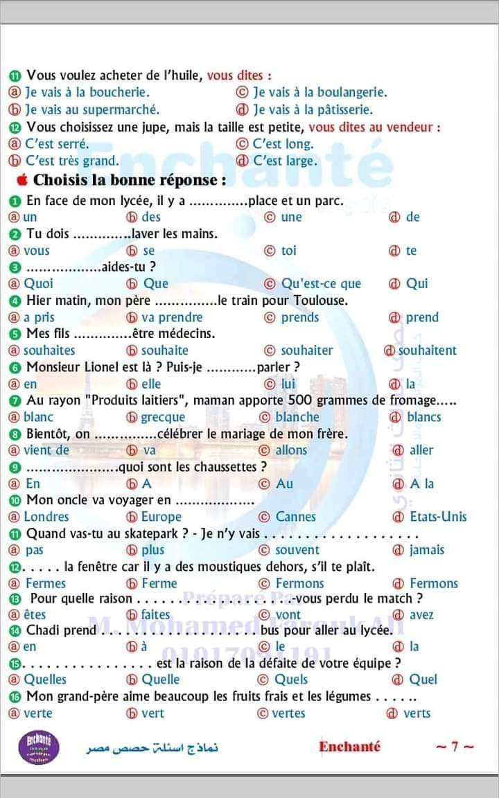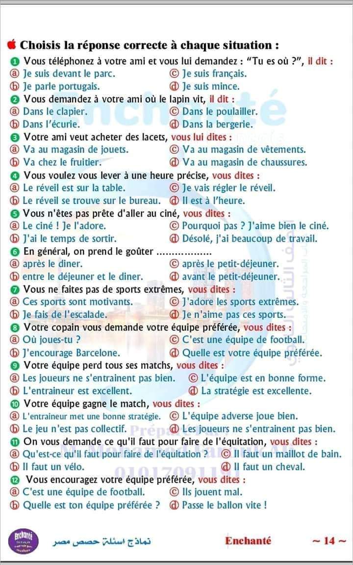 نماذج المراجعة النهائية أسئلة اللغة الفرنسية لطلاب الثانوية العامة 2024
