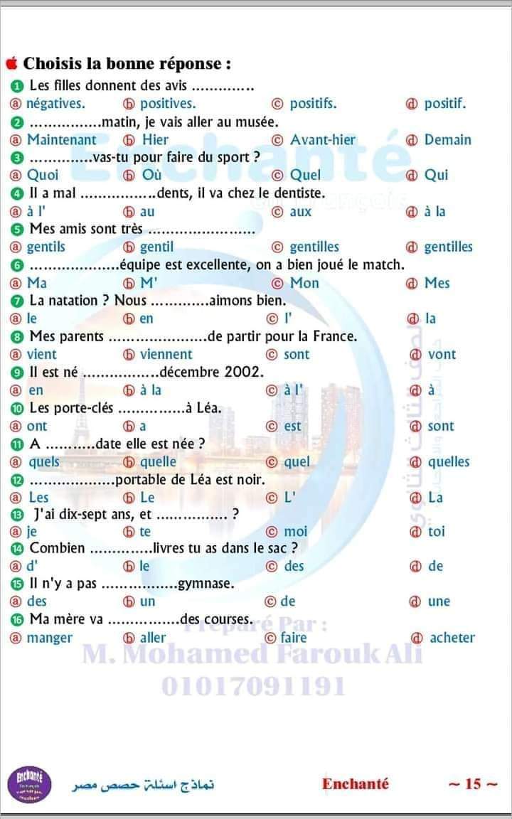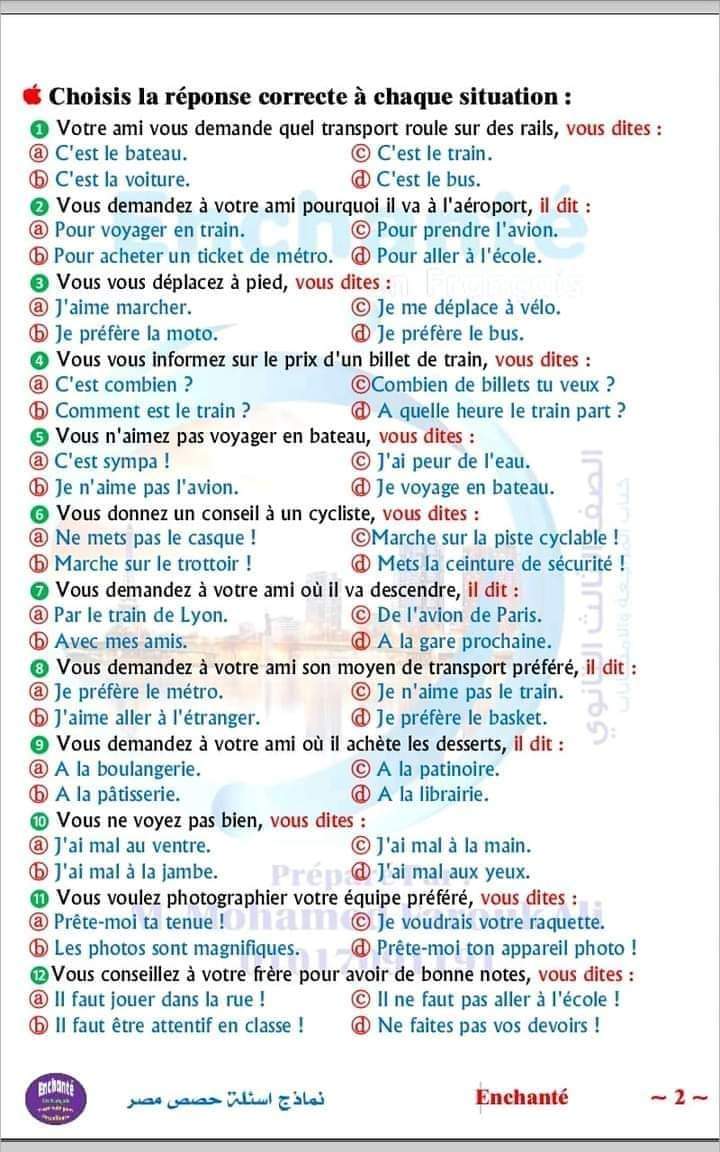 6 نماذج بالإجابات.. المراجعة النهائية أسئلة اللغة الفرنسية لطلاب الثانوية العامة 2024
