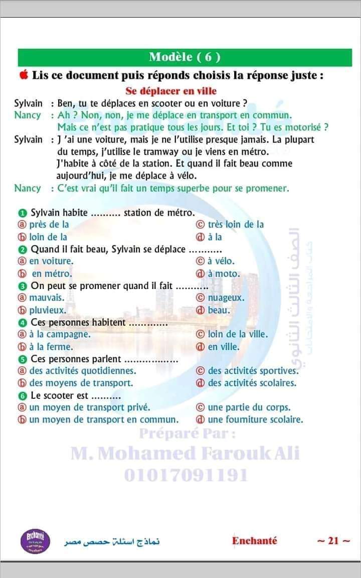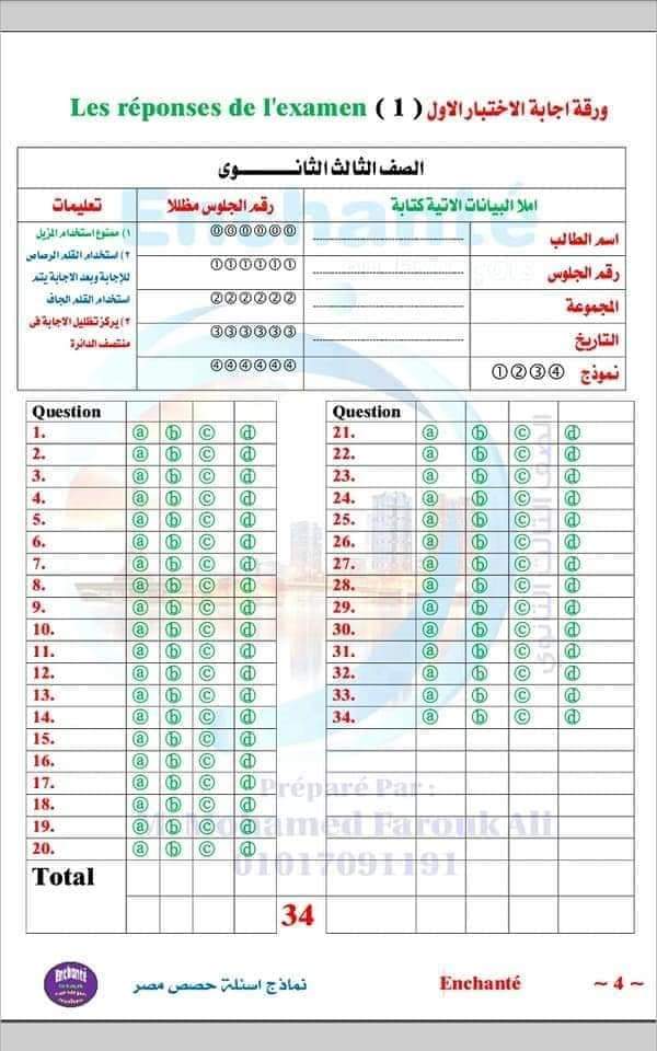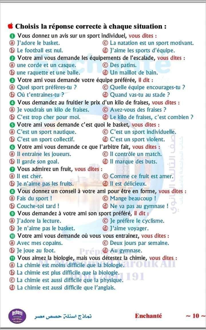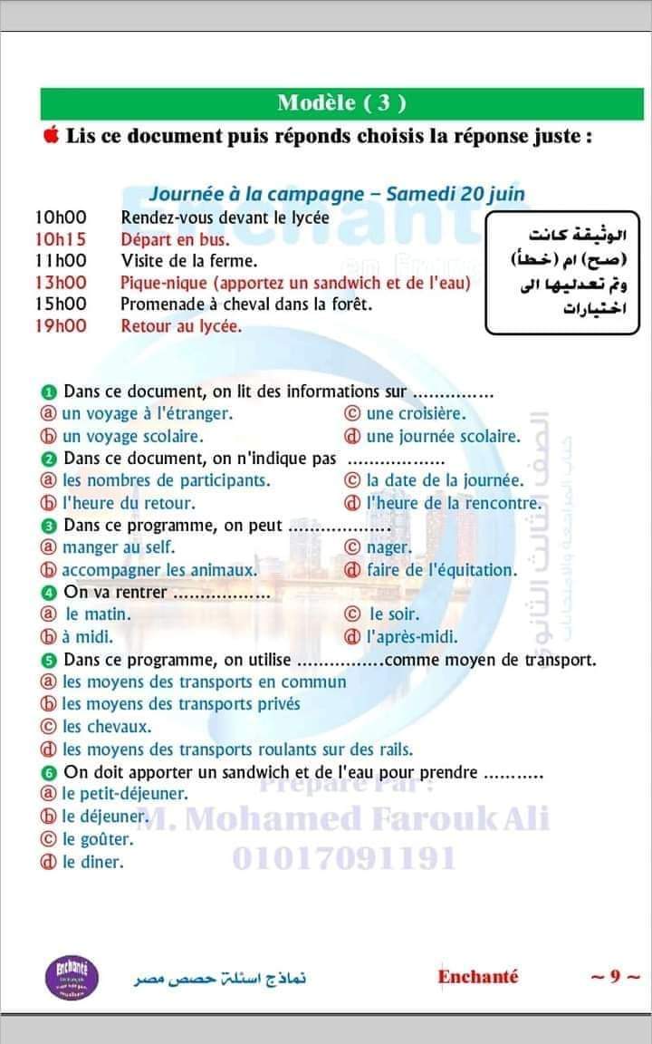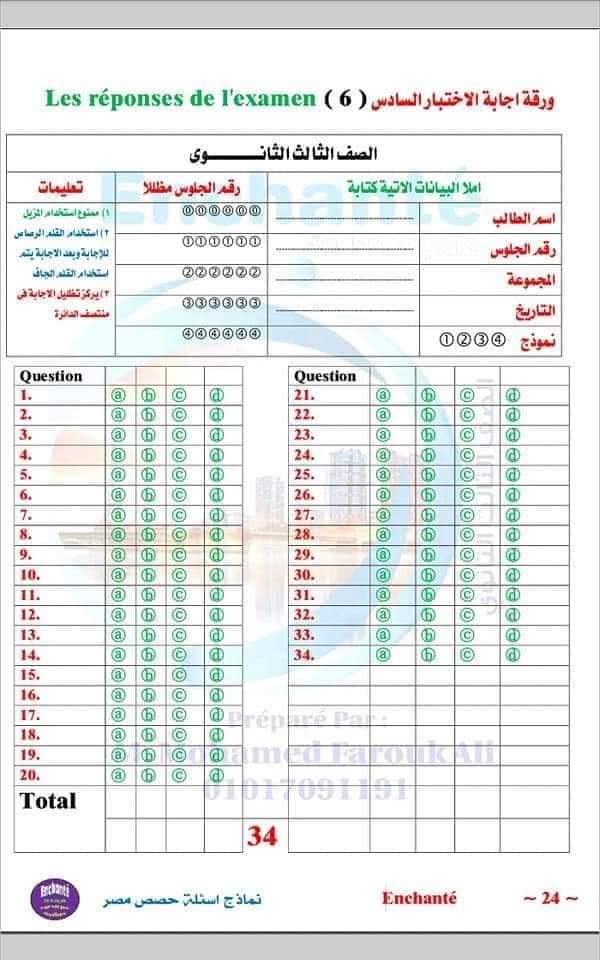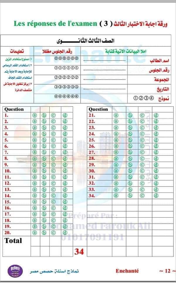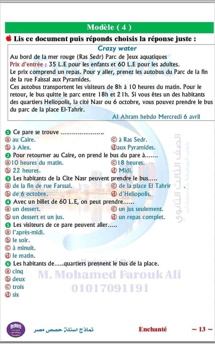 امتحانات فرنساوي للصف الثالث الثانوي pdf 2024