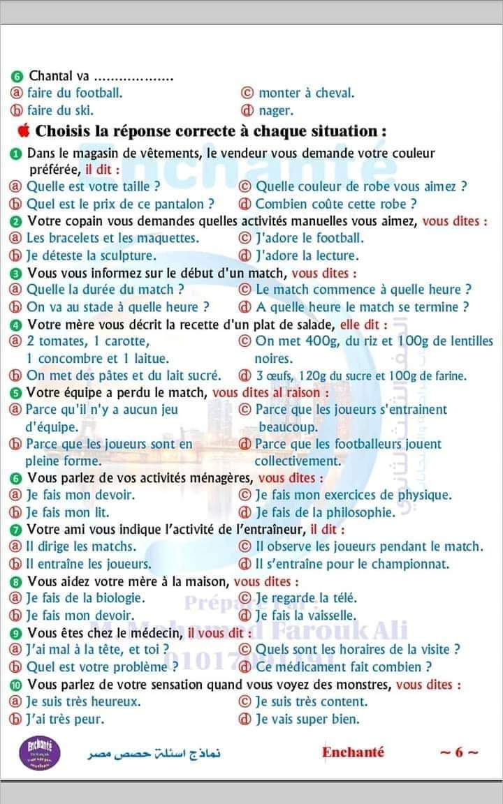 تتضمن المراجعة النهائية أسئلة اللغة الفرنسية لطلاب الثانوية العامة 2024، نماذج 6 امتحانات بالإجابات، ليستخدمها الطالب في استذكار المعلومات على منهج اللغة الفرنسية بالكامل، وذلك عن طريق الحل على جميع أجزاء المنهج بالكامل في صيغة سؤال وجواب، بل يفضل أن يتم حلها أولًا، ثم الاطلاع على الإجابات لمعرفة الصواب من الخطأ؛ لذا إليك في الفقرات التالية، 6 نماذج بالإجابات لـ المراجعة النهائية أسئلة اللغة الفرنسية لطلاب الثانوية العامة 2024.