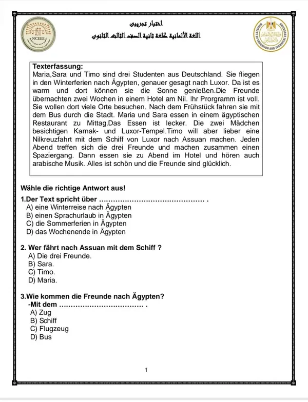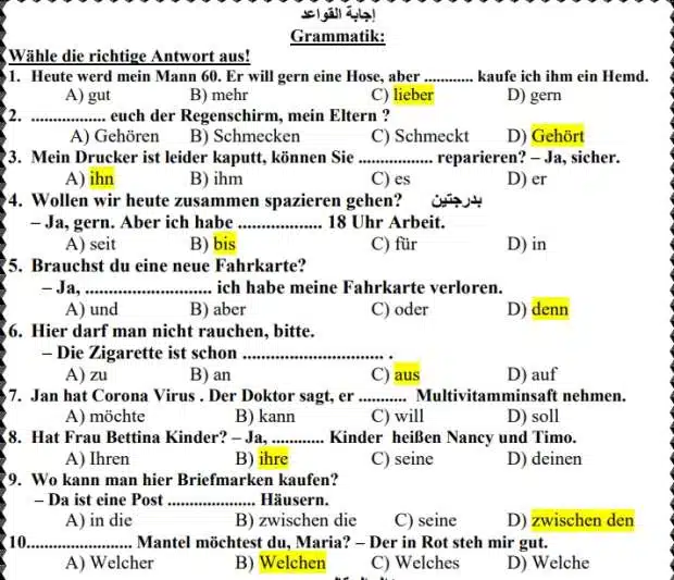 ونستعرض فيما يلي إجابات اختيار العام السابق على نموذج امتحان الألماني ثانوية عامة 2023 كالتالي: