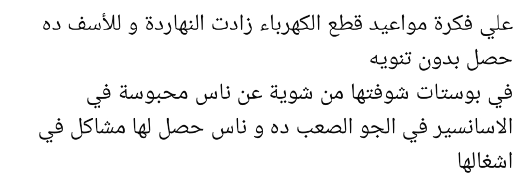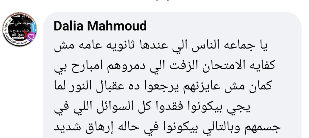 وكذا علق عدد من أولياء الأمور على زيادة ساعات تخفيف الأحمال لما له أثر سلبي على مذاكرة أبنائهم طلاب الثانوية العامة؛ إذ يشكل الطقس الحار عبئا عليهم، وانقطاع الكهرباء يزيد هذا العبء، خاصة مع زيادته في أيام الامتحانات.