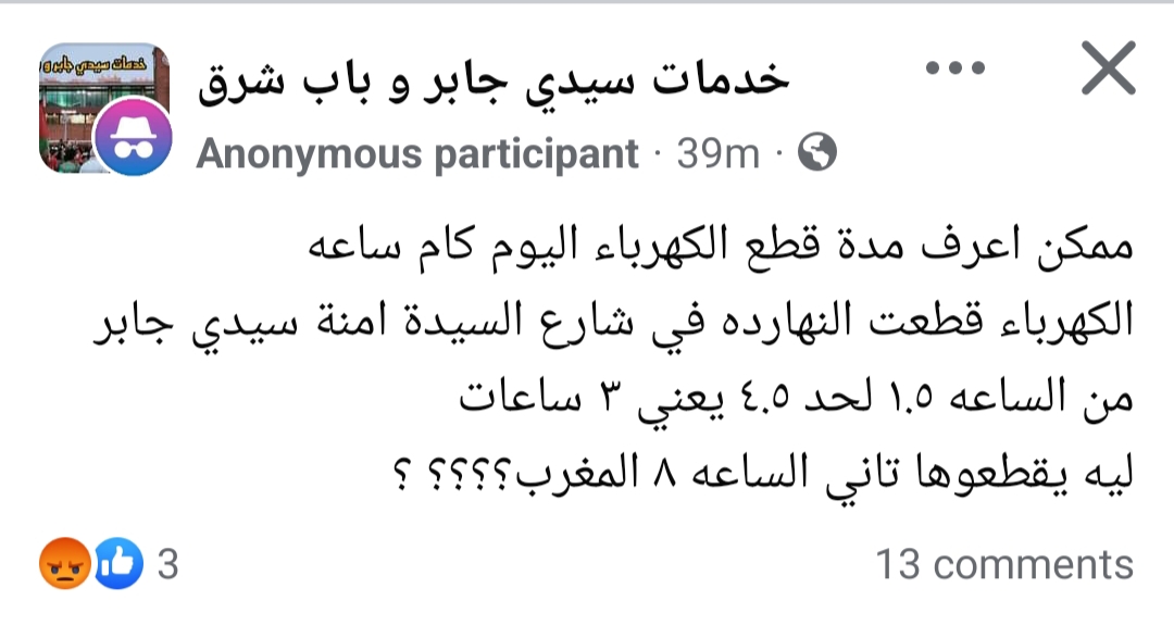واشتكى المواطنون في تعليقاتهم من عدم الإعلان المسبق عن مواعيد انقطاع الكهرباء الطارئة بالشكل الذي تعرضت له جميع المحافظات اليوم، حيث تغيرت مواعيد الانقطاع إلى 3 ساعات بدلا من ساعتين، وبعد الإعلان رسميا عن زيادة عدد ساعات تخفيف الأحمال اليوم وغدا فقط لـ 3 ساعات، فوجئوا بالانقطاع مجددا مساء اليوم بعد انتهاء الساعات المقررة.
