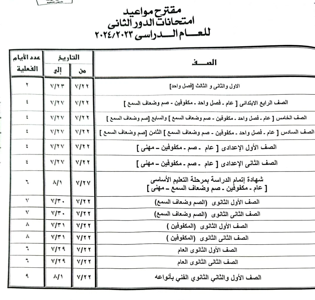 موعد بدء امتحانات الدور الثاني 2024 لطلاب الشهادة الإعدادية بالجيزة