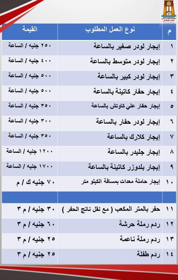 الوادي الجديد تعلن طرح معدات ثقيلة للإيجار أمام المواطنين